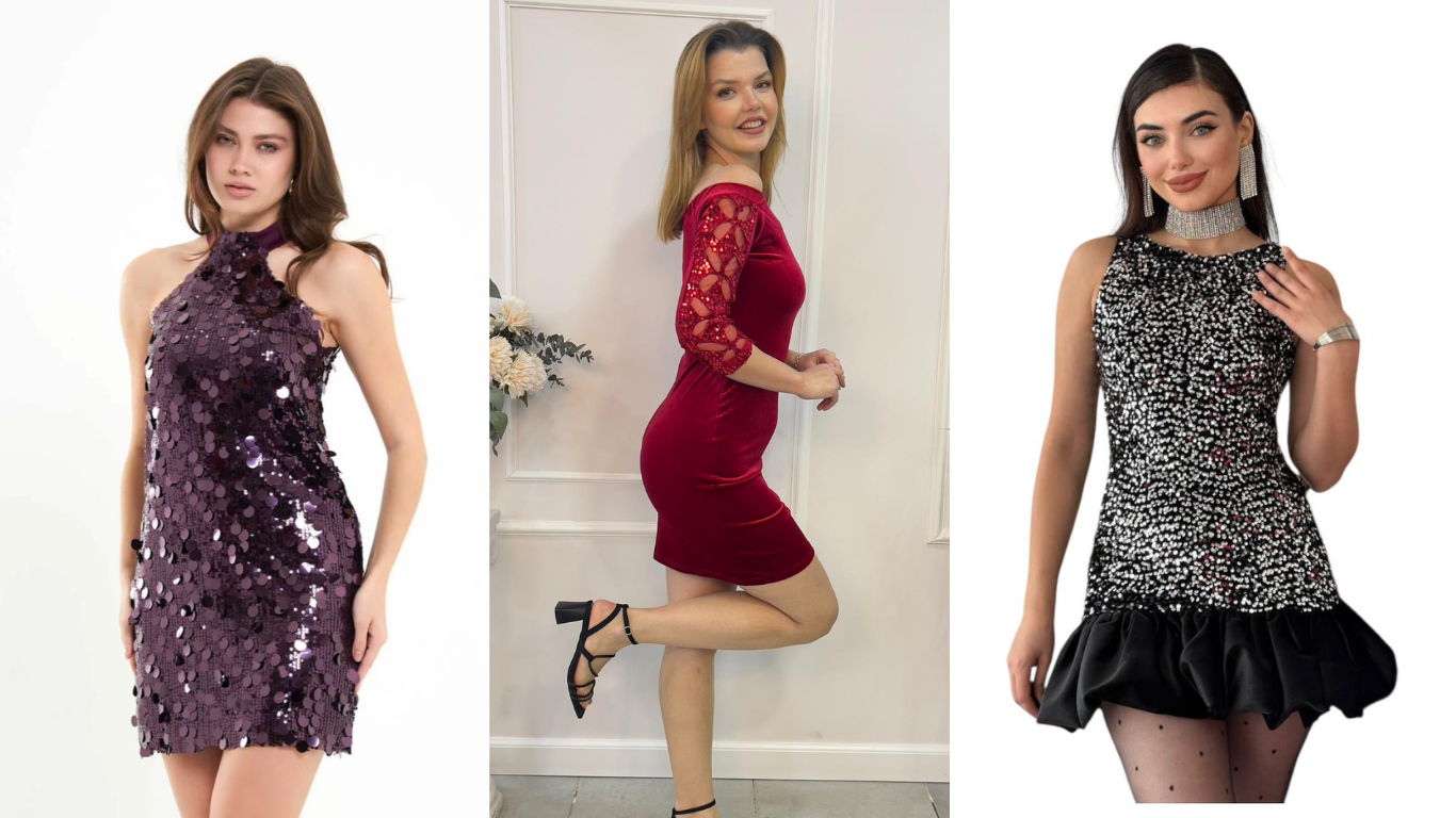 ✨ Siyah Pul Payet Mini Volanlı Elbise